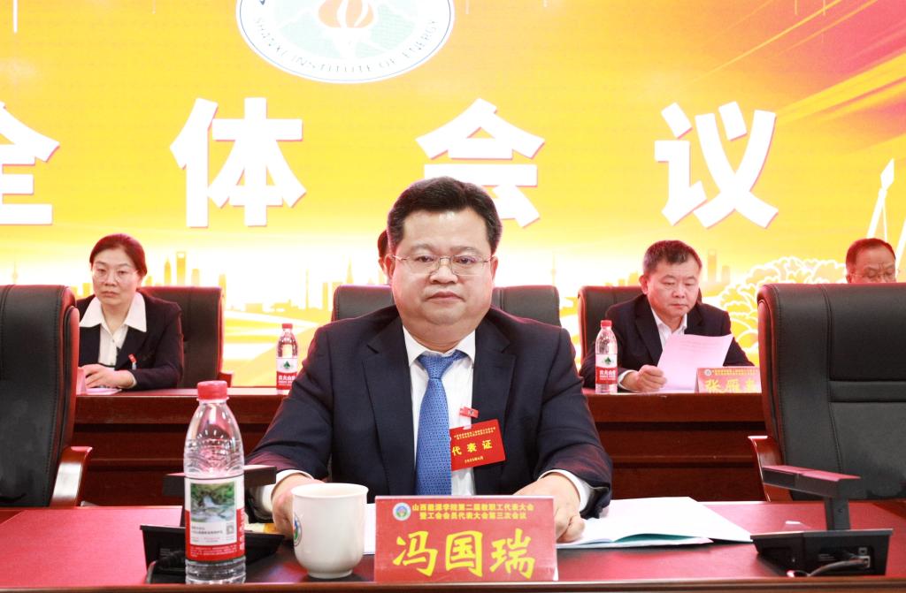 冯国瑞书记就贯彻落实好本次会议精神,进一步做好教代会和工会工作,推动学校事业高质量发展提出几点意见:一要铸魂强基固根本,以党建引领赋能学校发展新格局;二要攻坚克难抓改革,以实干担当书写内涵建设新答卷;三要聚势谋远促创新,以产教融合构筑能源特色新高地;四要正风肃纪树新风,以优良作风激活干事创业新动能。全体教职工要以本次大会作为新的起点,牢牢抓住顺利通过合格评估创建的历史性机遇,凝心聚力、团结奋斗,开顶风船、走上坡路,以更加昂扬的精神、更加扎实的工作,共同开创学校内涵建设和高质量发展新局面,为教育强国建设贡献山能力量、展现山能担当。